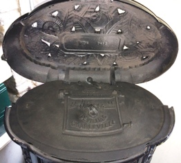 sized stove, and is called a 'poele à feu visible et